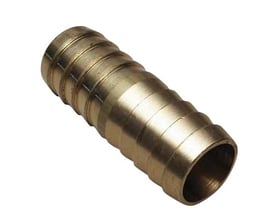Fitting af messing. Har udvendigt gevind i begge ender.