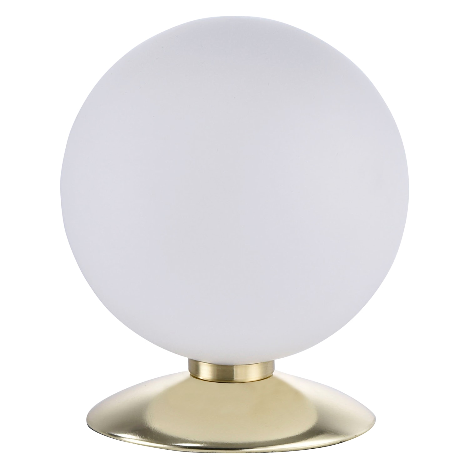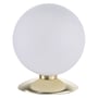 Bubba rund glasbordlampe med en diameter på 150 mm i blank messing finish. Dæmpbar i trin og ideel til indendørs brug.