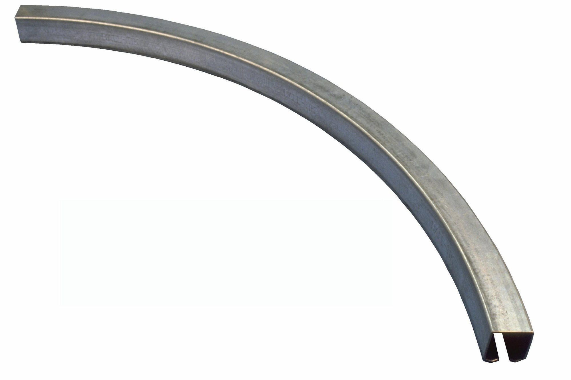 Bue-skinne BT-1 90° R600. Buet portskinne 90°. Stål, varmgalvaniseret. Radius = 600 mm.