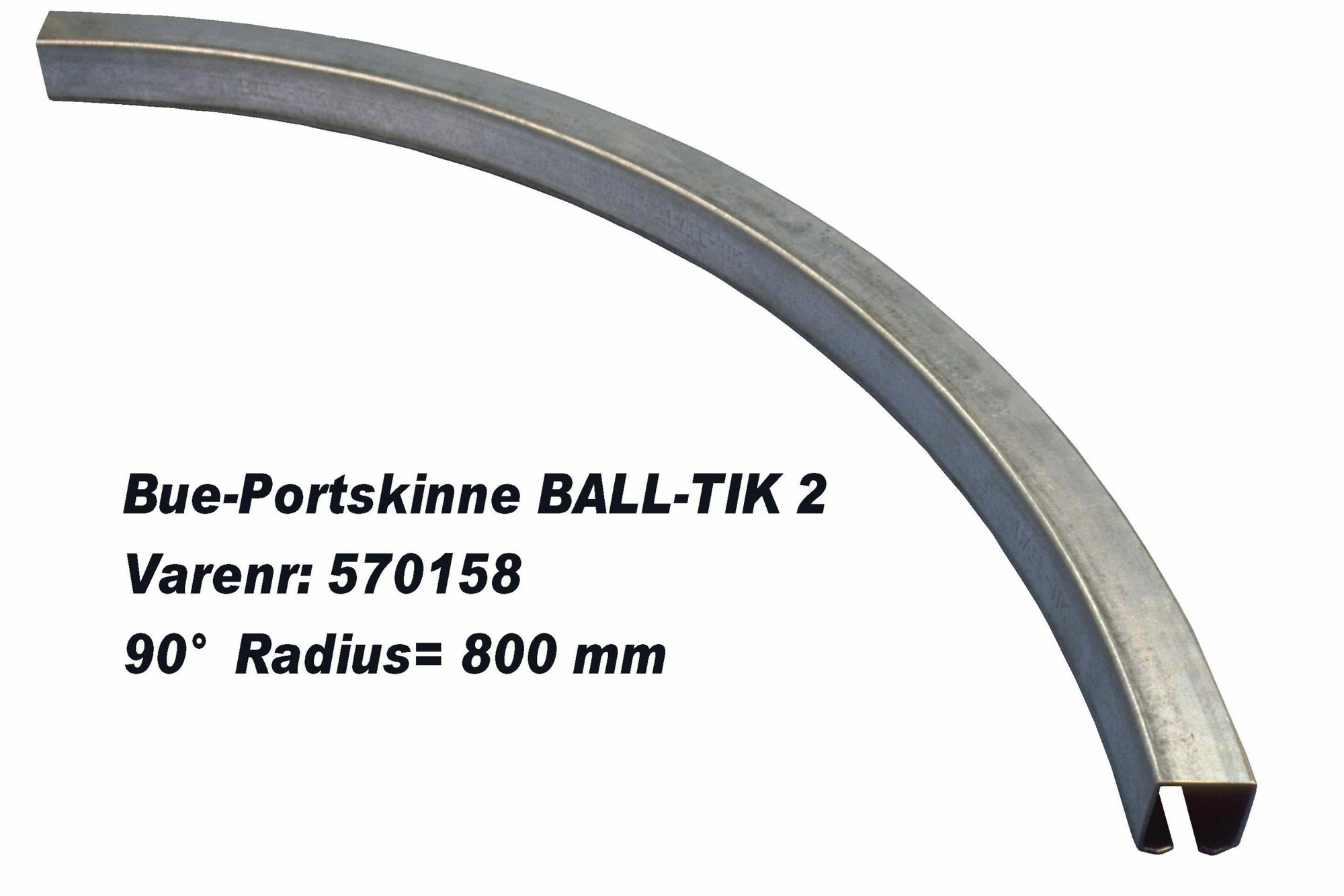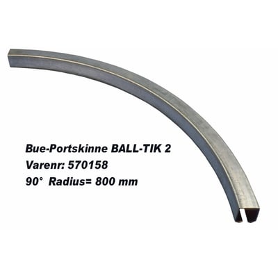 Buet portskinne 90° BT-2 udført i stål og varmgalvaniseret. Med en radius på 800 mm.