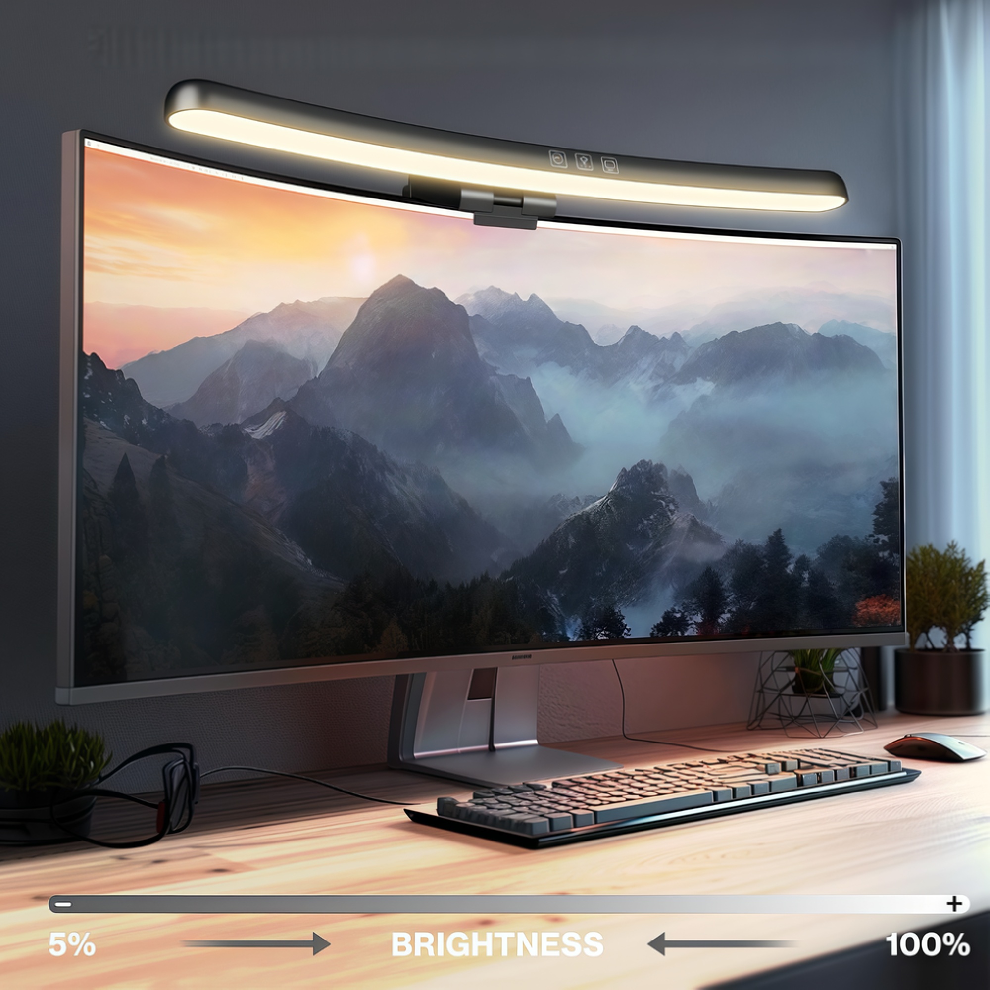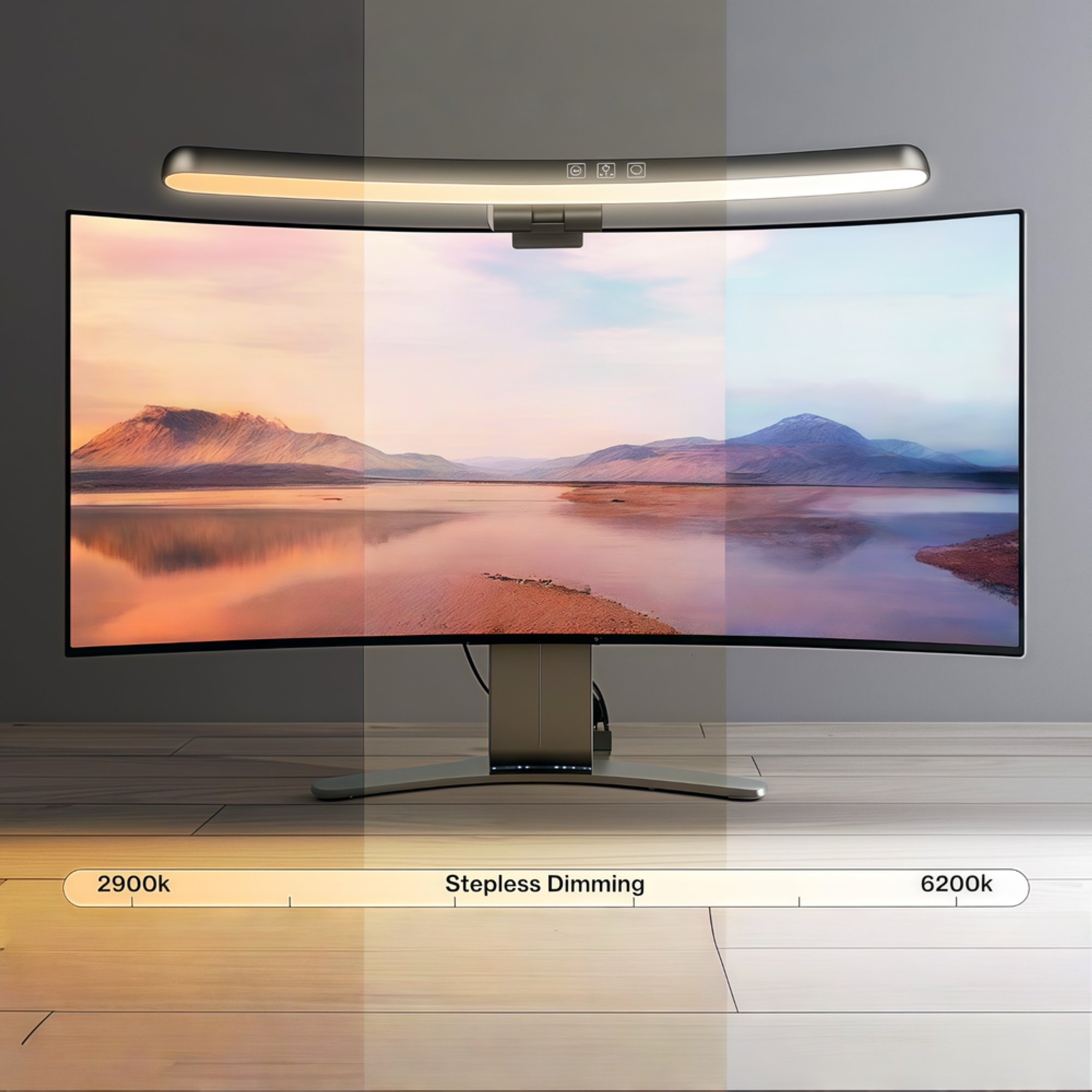 Forbedr din arbejdsplads med dette buede skærmlys. Justerbar lysstyrke og farvetemperatur via touch.