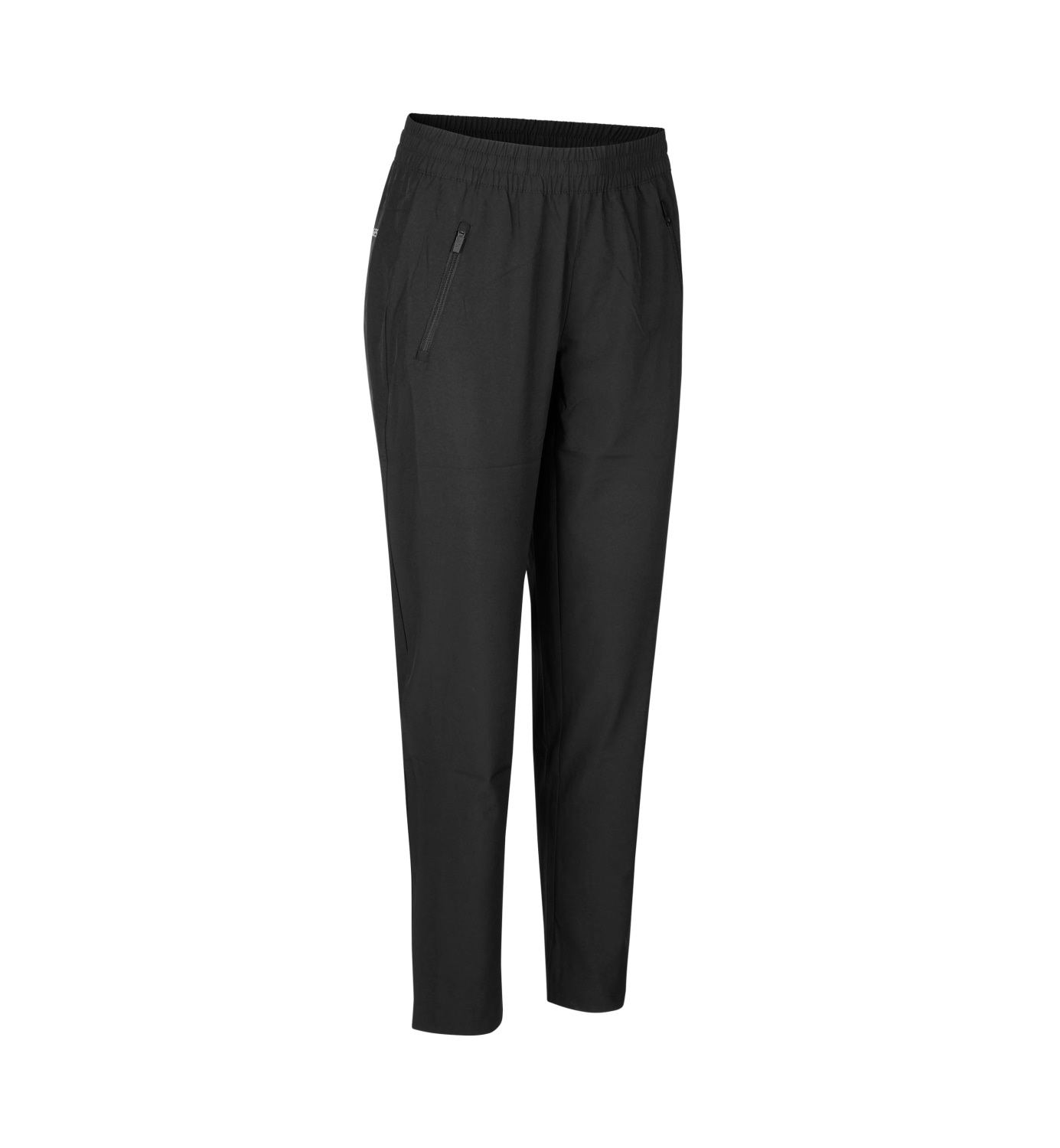 Komfortable fritidsbukser i vævet stretch kvalitet, der ikke krøller. Med elastik i livet, snore regulering, lynlåslommer og slank pasform.