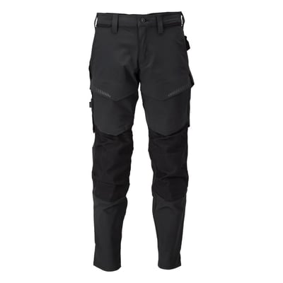 Mascot Customized 22379-311 bukser med knælommer i Ultimate Stretch. Lav vægt, høj slidstyrke og vandafvisende overflade. Tilføj hængelommer med Click Pocket System.