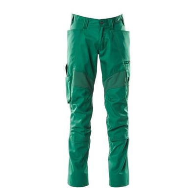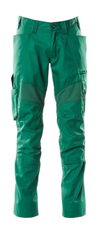 Buksebenene er ergonomisk formede, og der er bæltestropper samt gylp med lynlås. Bukserne er udstyret med forlommer, baglommer og en rummelig lårlomme med telefonlomme og klap med skjult trykknap. En integreret og aftagelig ID-kortholder er også inkluderet. Tommestoklommen er fremstillet i slidstærk CORDURA® med ekstra lommer.