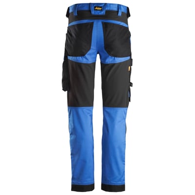 Disse arbejdsbukser fra Snickers AllroundWork kombinerer en moderne slim fit pasform med høj funktionalitet. Bukserne er designet med strategisk placeret 4-vejs stretch bagpå og i skridtkilen, hvilket sikrer ekstraordinær fleksibilitet og komfort under alle arbejdsforhold. De forbøjede ben bidrager yderligere til den behagelige pasform.