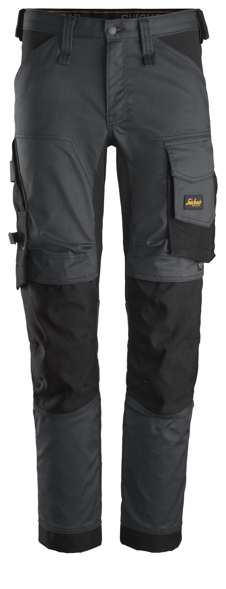 Disse stretch arbejdsbukser fra Snickers Workwear kombinerer en moderne slim fit pasform med strategisk placeret 4-vejs stretch. Stretchmaterialet er placeret både bagpå og i skridtkilen, hvilket sikrer optimal fleksibilitet og komfort under arbejdet.