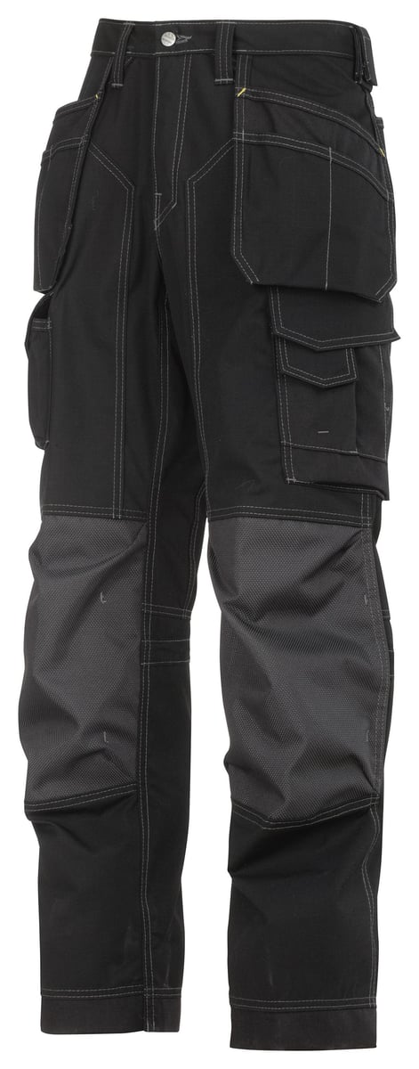 Disse sorte arbejdsbukser i størrelse 48 er designet til at yde pålidelig beskyttelse og komfort under lange arbejdsdage, især ved arbejde på knæene. Bukserne er fremstillet i et let, men slidstærkt ripstopmateriale, der sikrer lang levetid og modstandsdygtighed over for daglig brug. De forstærkede lår og benender bidrager yderligere til buksernes holdbarhed.