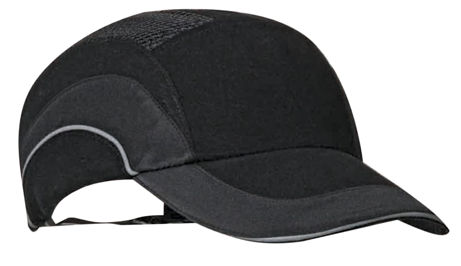 Bump Cap med indbygget hård skal, der beskytter mod mindre stød og slag. JSP A1+M har ventilation med nylon mesh, frotté svedbånd og 7 cm skygge.