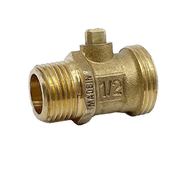 Kuglebundstophane med nippel for tilgang, 1/2"x3/4". Udført med nippel/nippel tilslutning.