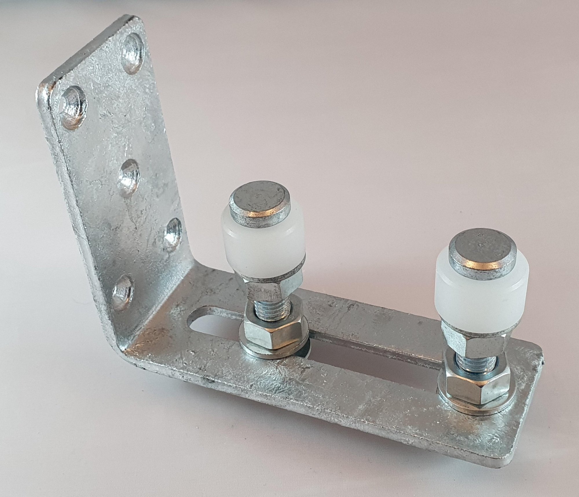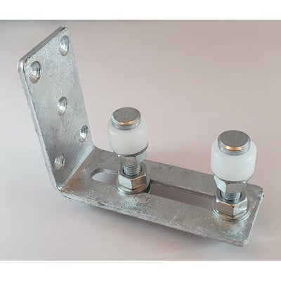 Bundstyr dobbelt BT-1 til vægmontering med 2 stk. Ø25 hjul. Dimensioner: 105x130x50 mm.