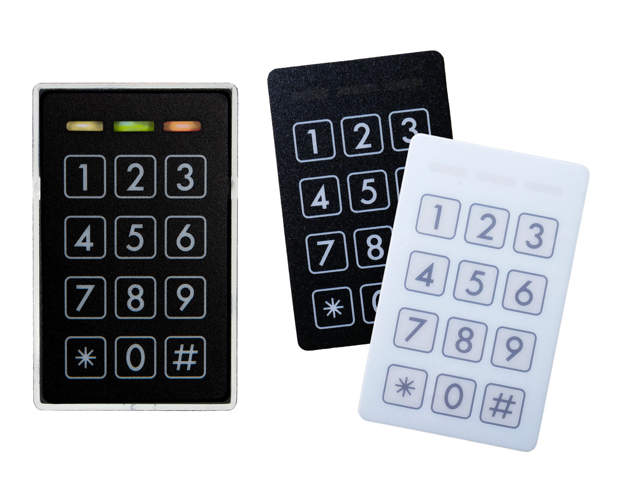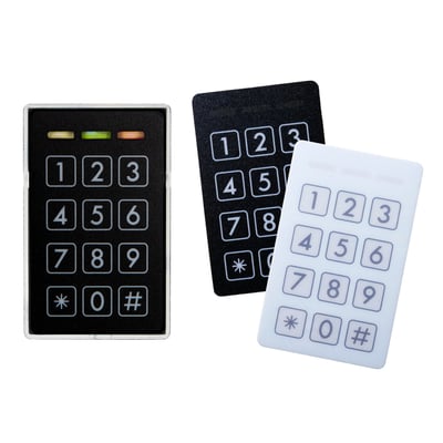 MyKey C1000LP adgangskontrol med op til 190 brugere, H-bro eller open collector udgang, indbygget batteri og IP67 klassificering. Leveres med sort og hvid label.