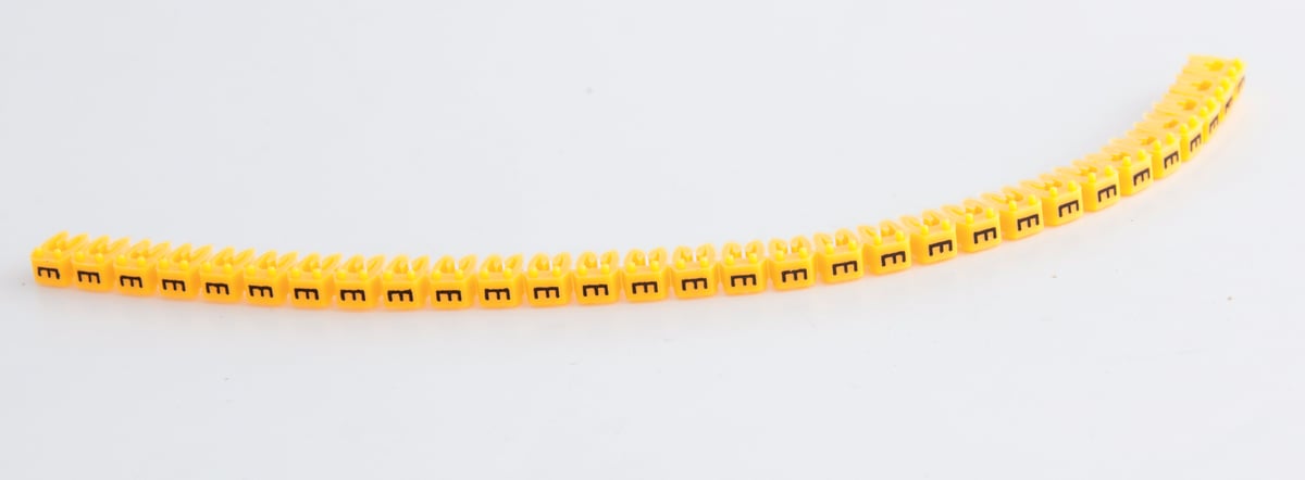 Gule ledningsmærker med sort tekst til 1,5-2,5 mm² ledninger. Kan monteres før eller efter ledningsføring. Hurtig montering med magasin.