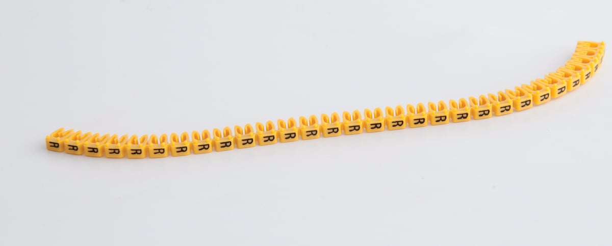 Gule ledningsmærker med sort tekst til 1,5-2,5 mm² ledninger. Hurtig montering før eller efter ledningsføring.