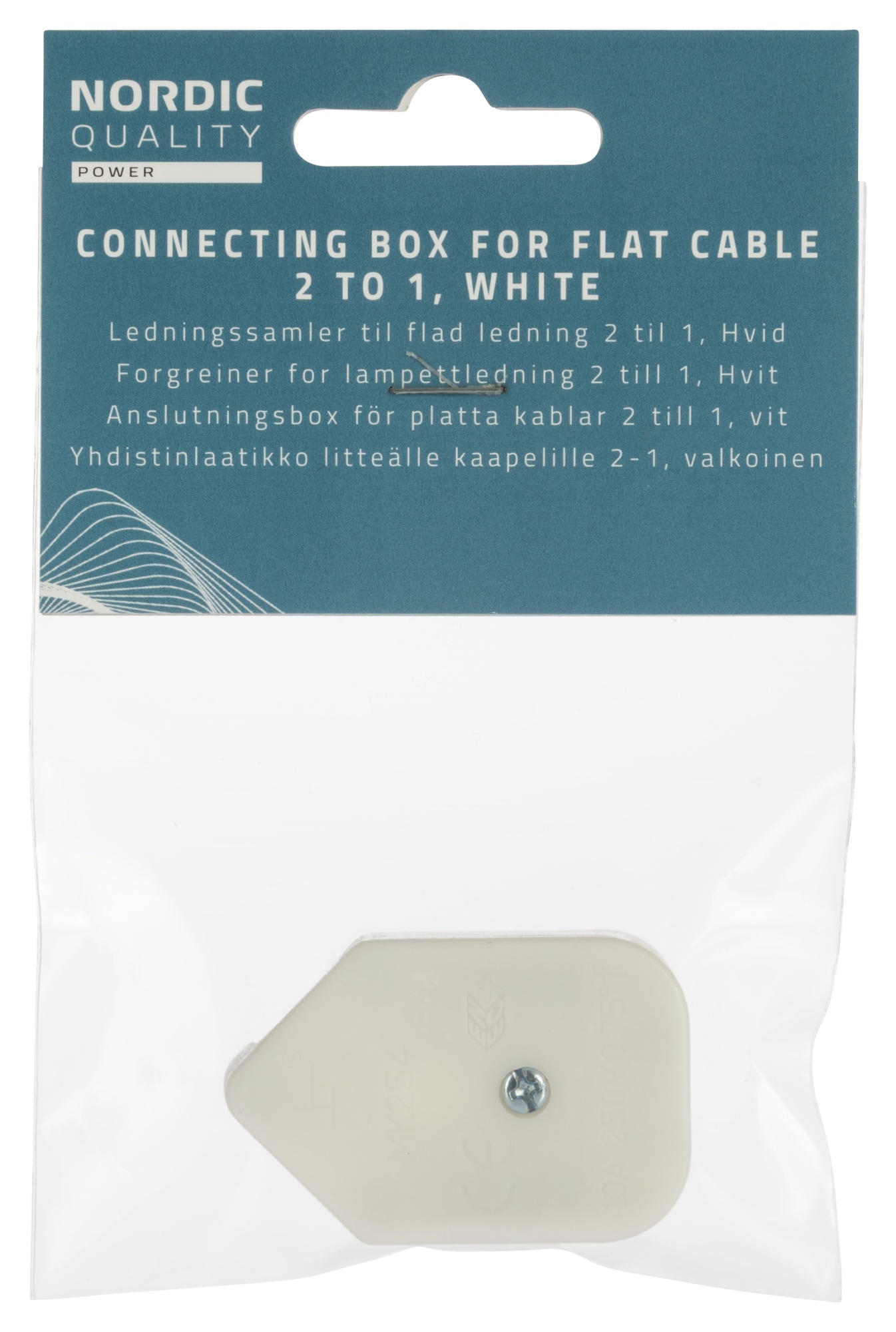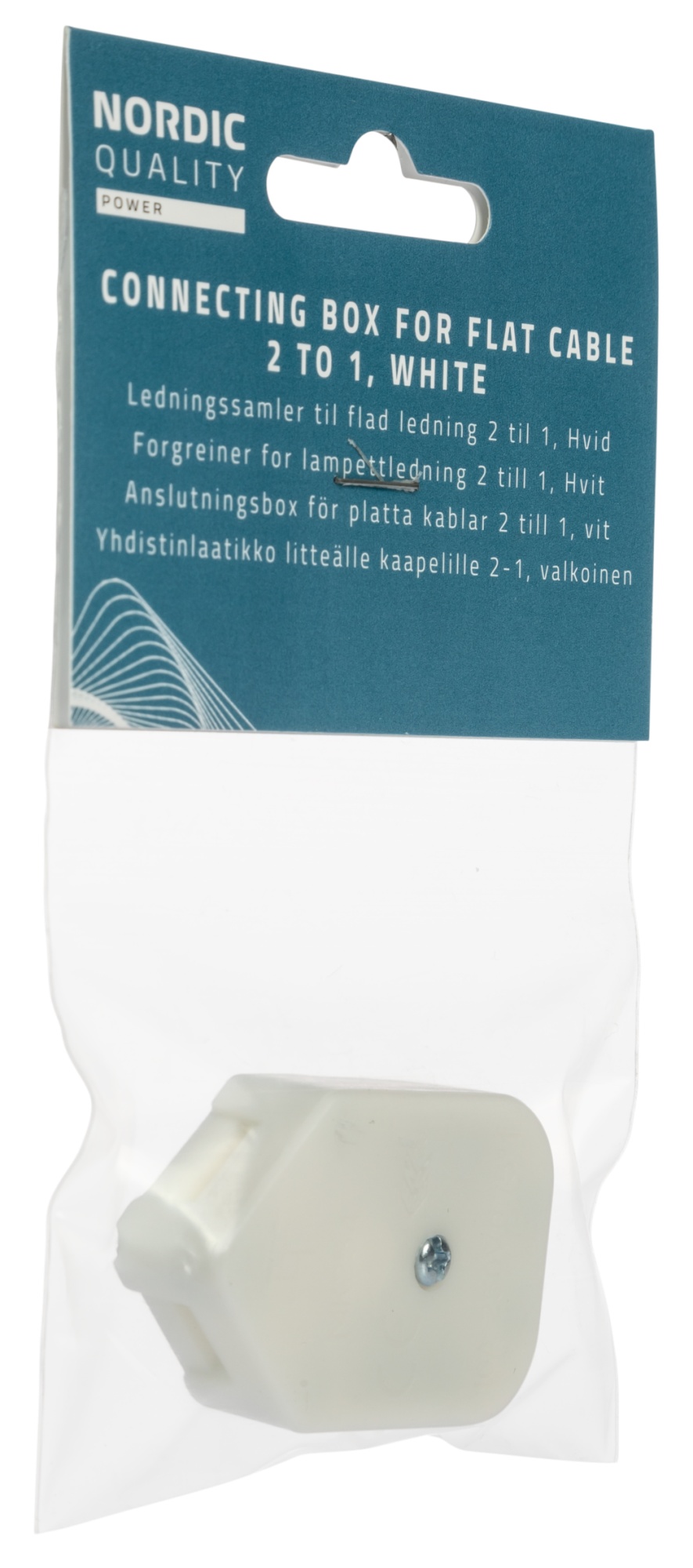Praktisk kabelforbindelsesboks til flade kabler, der muliggør en 2 til 1 samling i et diskret hvidt design. Ideel til organisering af kabler.