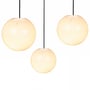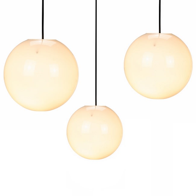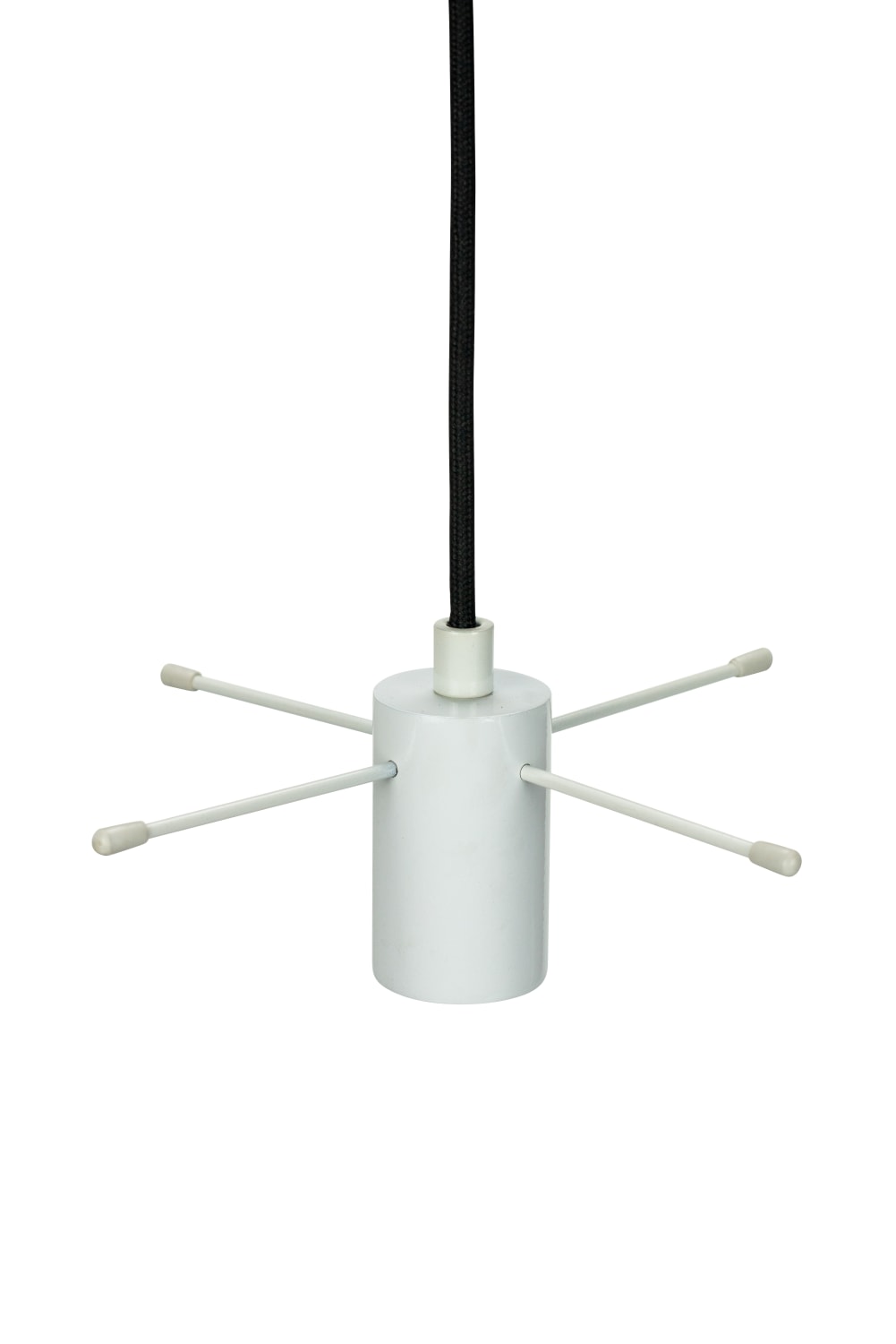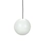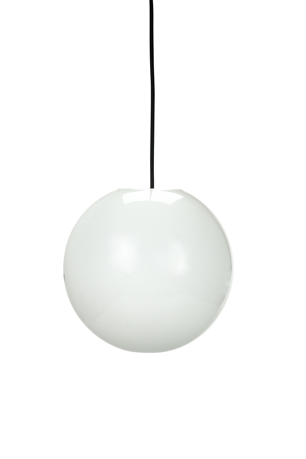 Moderne opal Café pendel med et nyt look. Ophænget er bygget op omkring fire metalholdere, hvor glasset ligger let på. Den sorte stofledning fuldender det klassiske og moderne udtryk.