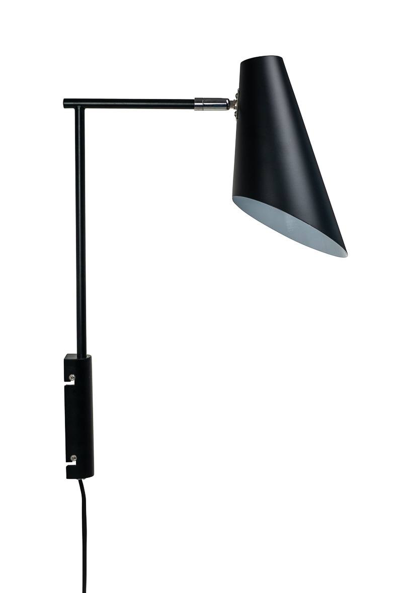 Cale væglampen er en tidløs og funktionel belysningsløsning udført i mat sort metal. Den er designet til at give et koncentreret lys, hvilket gør den særligt velegnet som læselampe ved lænestolen, skrivebordet eller sengen.