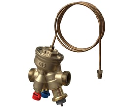 Calypso Exact termostatventil til 2-strengs varmeanlæg. Trinløs forindstilling sikrer præcis hydraulisk balancering og optimal varmefordeling. Lavt støjniveau og flowtolerancer.