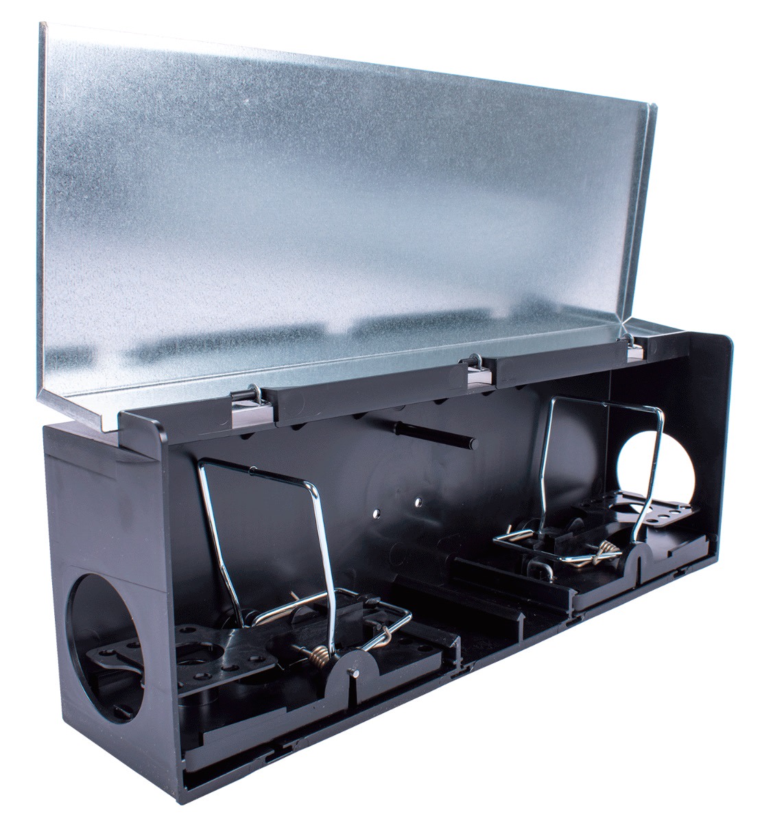 Camro dobbeltkasse med 2 Snap rotteklapfælder er en simpel og praktisk løsning til bekæmpelse af rotter uden gift. Kassen leveres med 2 klapfælder og et vandret plastspyd.