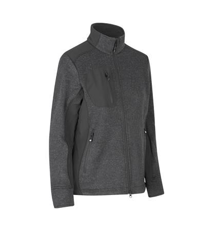 Smart strikfleece cardigan i melangefarvede garner med kontrastbesætninger. To-vejs lynlås, justerbar snøre og lommer med lynlås.