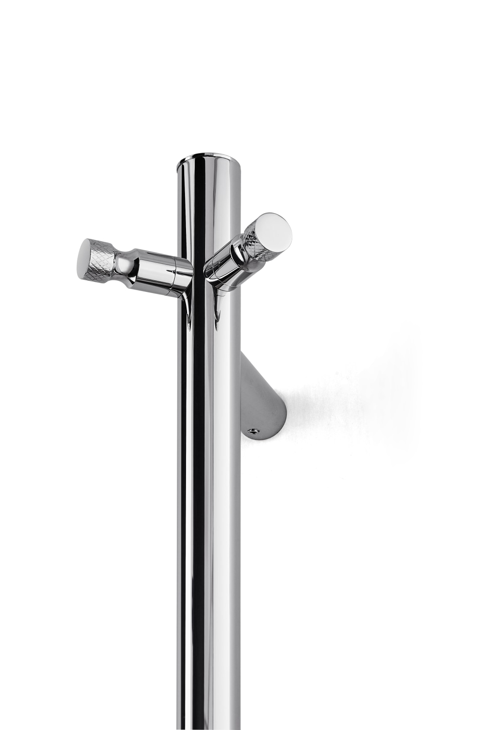 Stilfuld elhåndklædetørrer i poleret stål med 43.8W ydelse. Mål: 1480x85x85 mm. IP24-klassificeret.