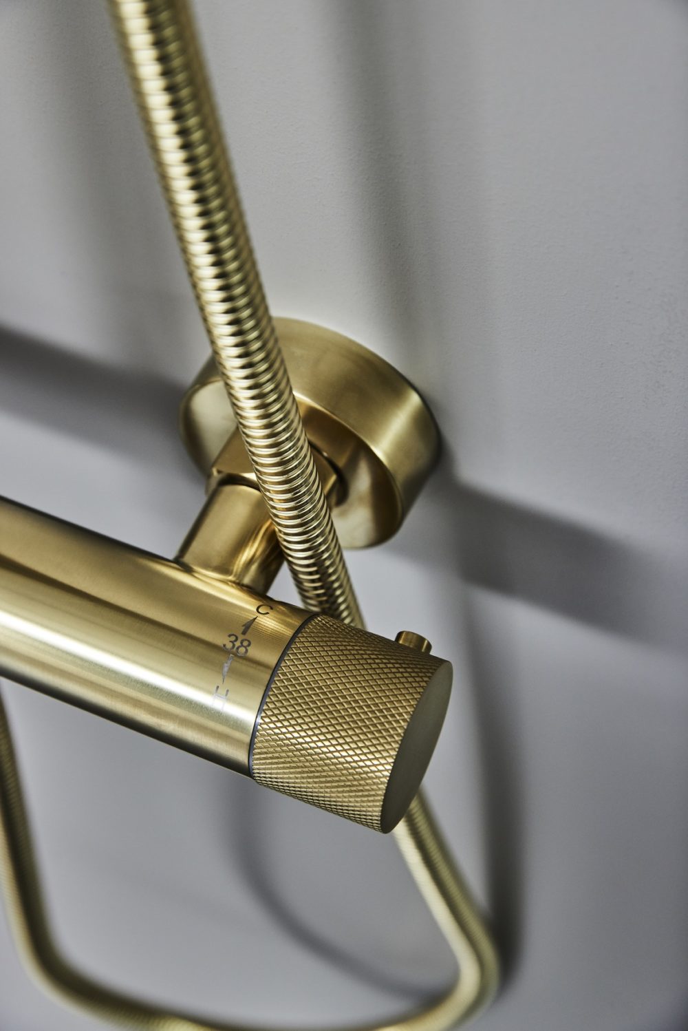 Dette Cassøe T8 brusesæt kombinerer elegant design med praktisk funktionalitet. Med sin børstede messingoverflade og crystal cut-detaljer tilføjer brusesættet et luksuriøst præg til ethvert badeværelse.