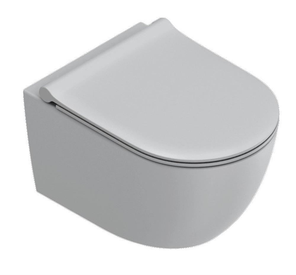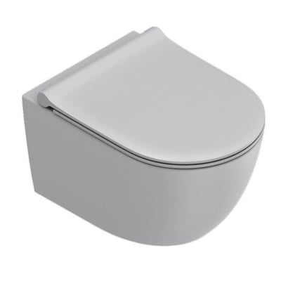 Catalano Sfera vægtoilet med Silentech skyl, i mat cement satin finish. Mål: 50x35 cm. Skjult montering og rengøringsvenlig overflade.