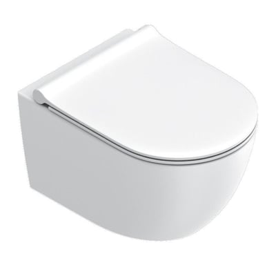 Catalano Sfera vægtoilet med Silentech skyl, i mat hvid satin. Mål: 50x35 cm. Skjult montering og rengøringsvenlig overflade.