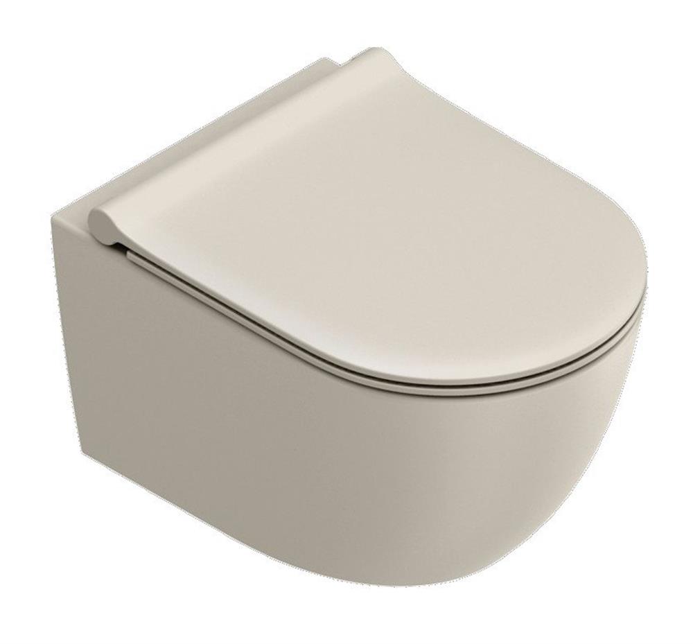 Sfera vægtoilet med Silentech skyllefunktion i Sabbia satinato farve. Skjult montering og rengøringsvenlig overflade.
