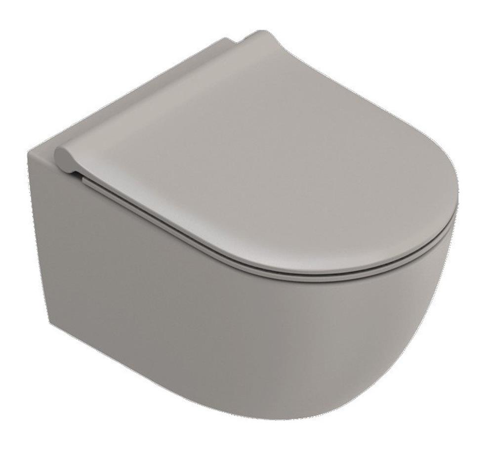 Catalano Sfera vægtoilet med Silentech skyl, i Sabbia satinato finish. Mål: 50x35 cm. Skjult montering og rengøringsvenlig overflade.