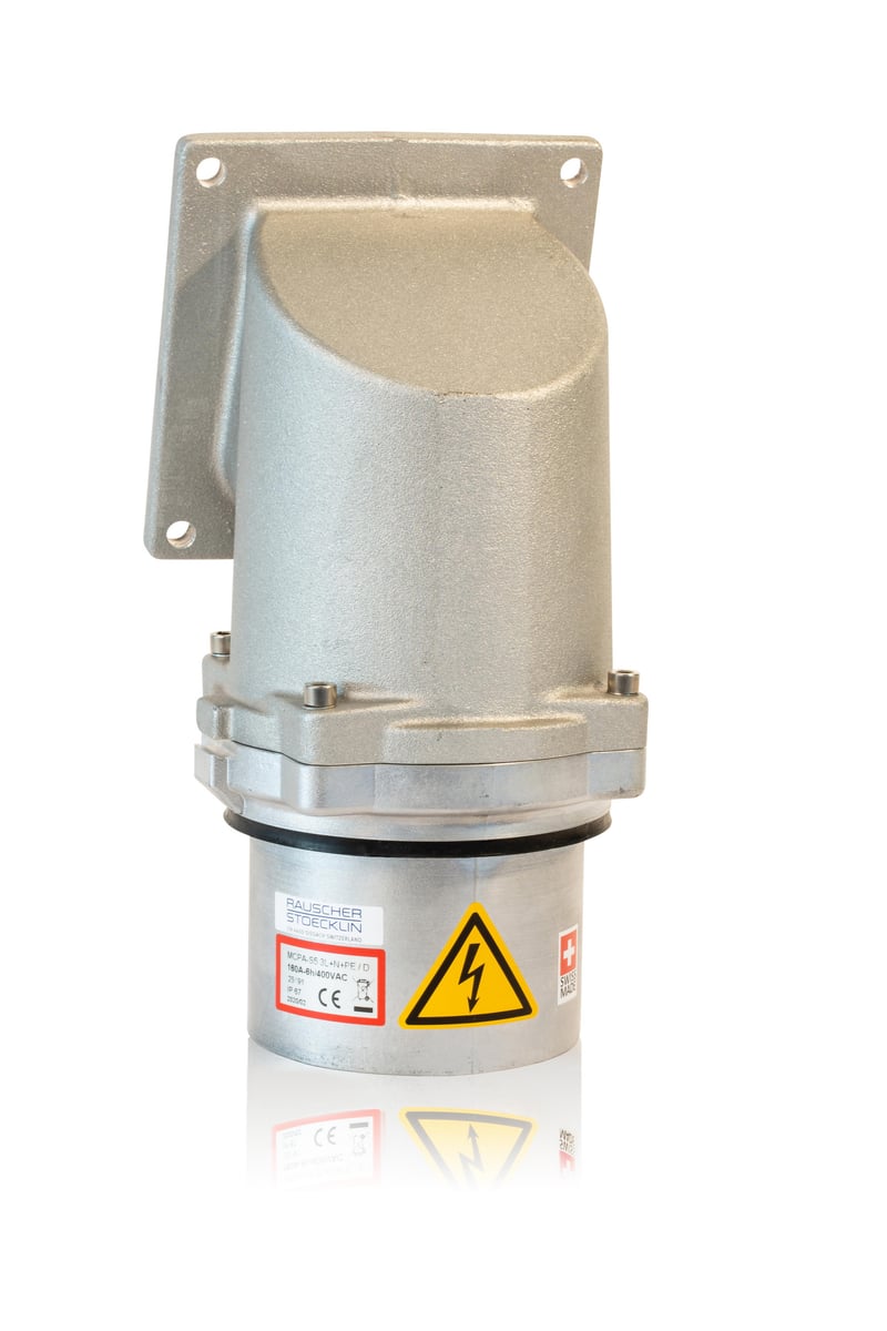 Vinklet CEE apparatindtag med 160A, 6h, IP67 og 3P+N+PE.