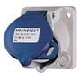 CEE vægudtag med 3 polet, 16A og 230V. IP44-klassificering og 6H jordposition.