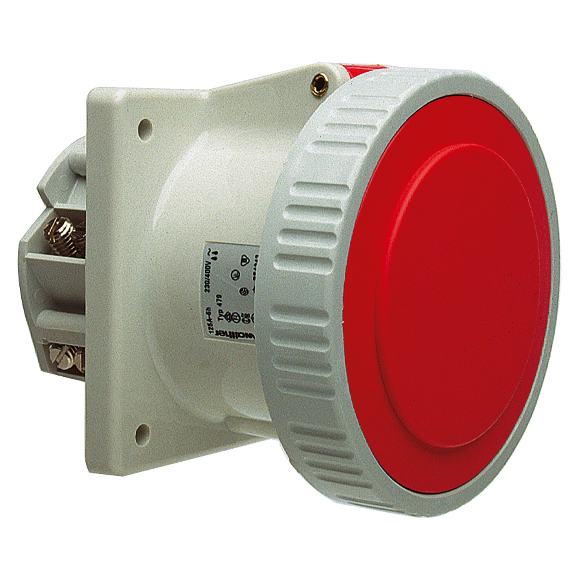 Walther-Werke CEE indbygningsvægudtag med lige udgang, 125A, 5 poler og IP67-beskyttelse. Fremstillet i førsteklasses materialer med glatte, rengøringsvenlige overflader.