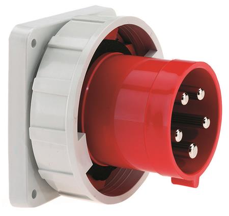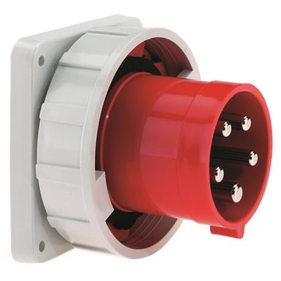 CEE indtag til indbygning, H6, 400V, 63A, 5 polet. Rød indbygning med flange 110x106 mm og IP67-beskyttelse. Fremstillet i polyamid.