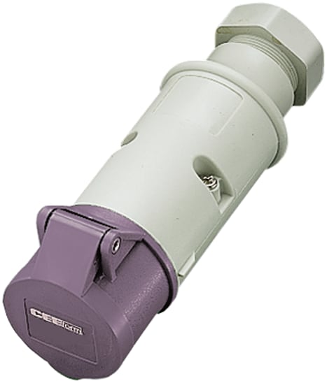 Mennekes CEE mellemled til lavvolt. 3-polet, 16A, 20-25V, 0H og IP44. Overholder DIN VDE 0623, EN 60309-2.