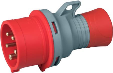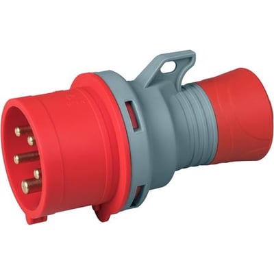 Stikproppen er udført i polyamid, hvilket sikrer en god modstandsdygtighed over for mekanisk påvirkning og kemikalier. Den røde farve indikerer desuden en spænding på 400V, i overensstemmelse med standarder for CEE-forbindelser.