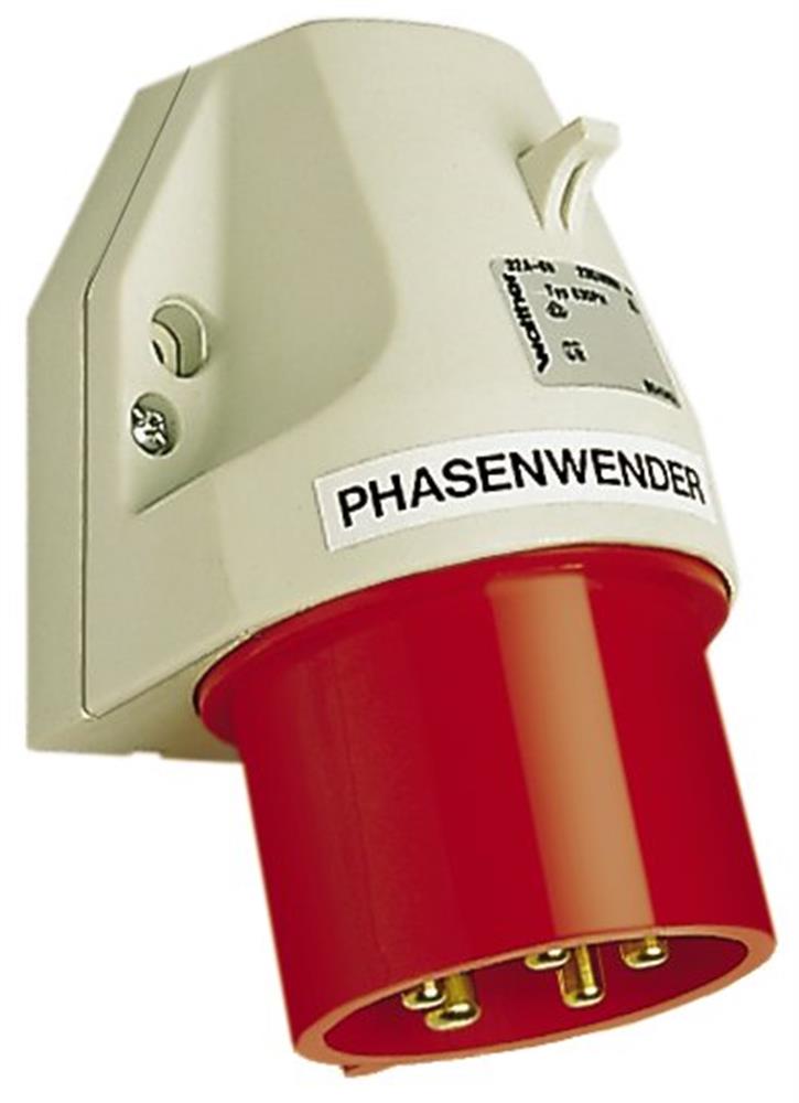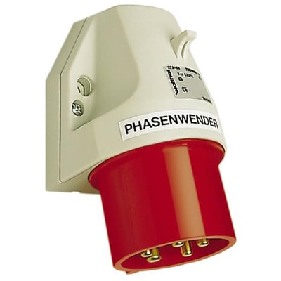Udvendigt vægindtag med fasevender, 16A og 5 poler. Walther-Werkes CEE materiel er fremstillet i førsteklasses materialer og er rengøringsvenlige.