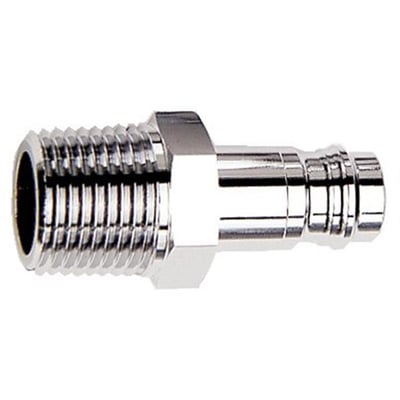 Denne koblingsnippel er fremstillet i forniklet messing, hvilket gør den særligt velegnet til brug i våde, fugtige og ætsende miljøer. Den er ideel til applikationer som oppustning af luftpuder og dykkerudstyr.