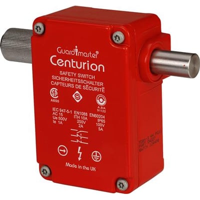 Centurion left 440K-B04026 er en metalafbryder med kapslingsklasse 65. Den har 1 NO og 2 NC kontakter.