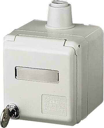 Mennekes CEE stikdåse til udvendig montering. 16A, 230V, 3 polet og IP44 klassificeret. Jordbenets position: Klokken 6. Låsbar med identiske låse.