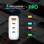 Kompakt 4Smarts GaN Flex Pro 100W oplader med 3 USB-C og 1 USB-A porte. Perfekt til rejsen.
