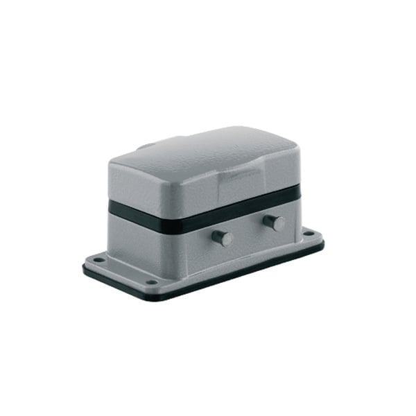 Dette chassishus fra Weidmüller er designet til HDC industristik i størrelse 4. Det er udstyret til montering med 2 bøjler og inkluderer et låg for ekstra beskyttelse.