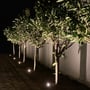 I denne specifikke variation er lampen kippet en smule i forhold til stenen. Dette er en praktisk funktion, især hvis stenen skal placeres i en græsplæne, da det tillader lyskeglen at rettes præcist mod et ønsket objekt, såsom et træ.