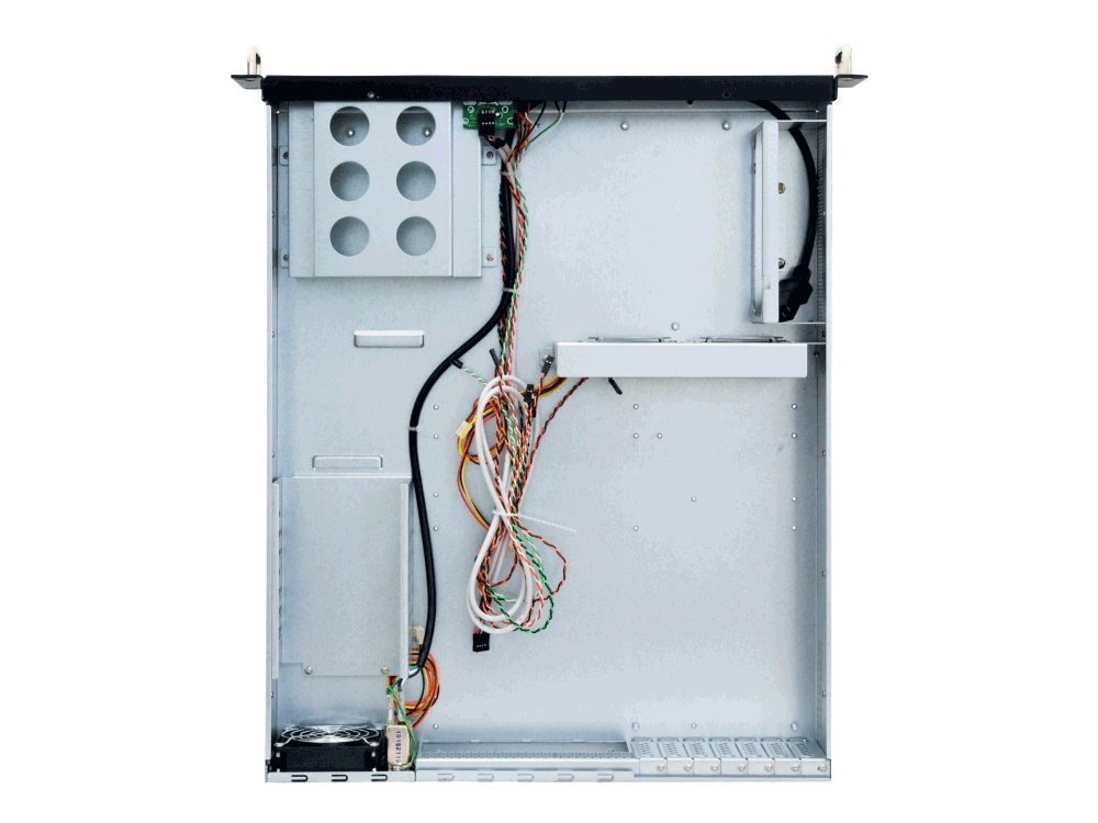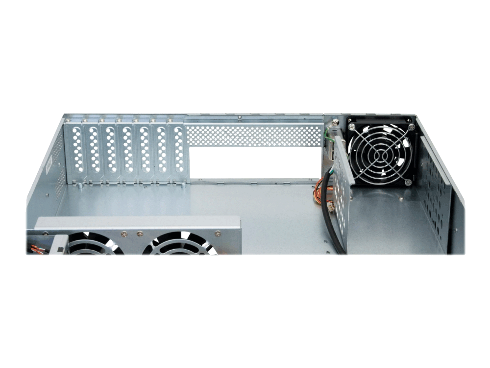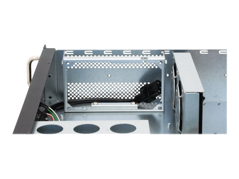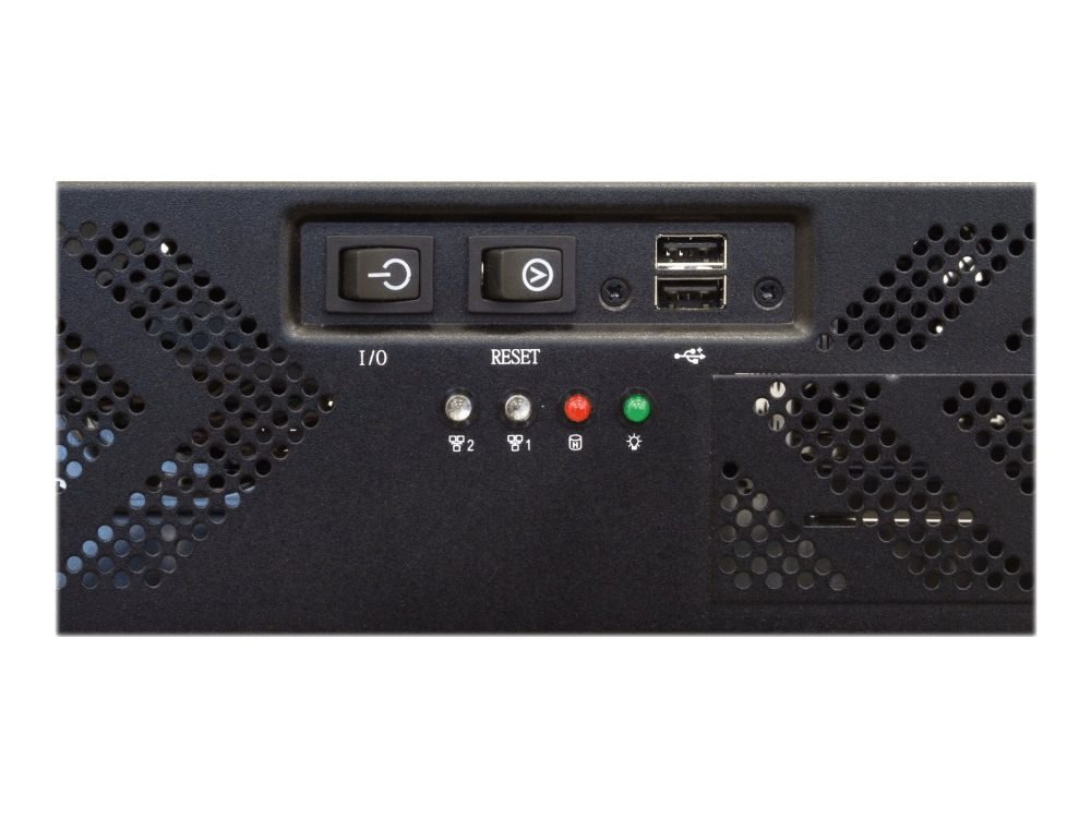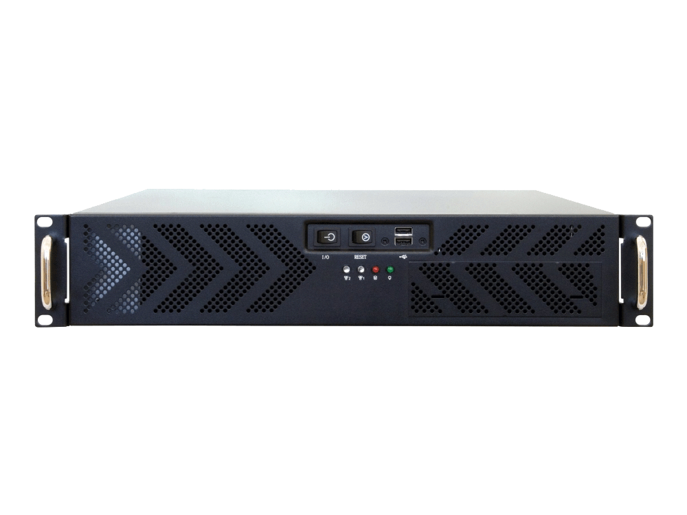 19" 2U UNC-210T-B-U3-OP Rack i sort, med plads til ATX bundkort og 4 x 3,5" drev.