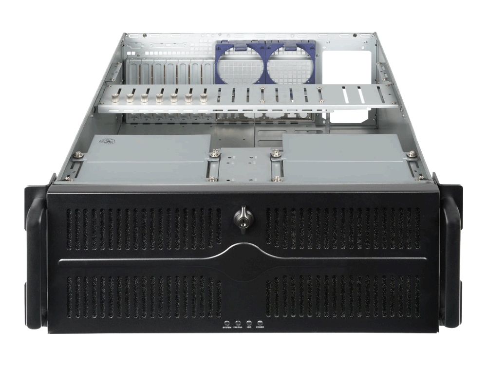 Robust IPC kabinet i 4U EATX formfaktor, sort, med plads til ATX bundkort og et 400W ATX strømforsyning.
