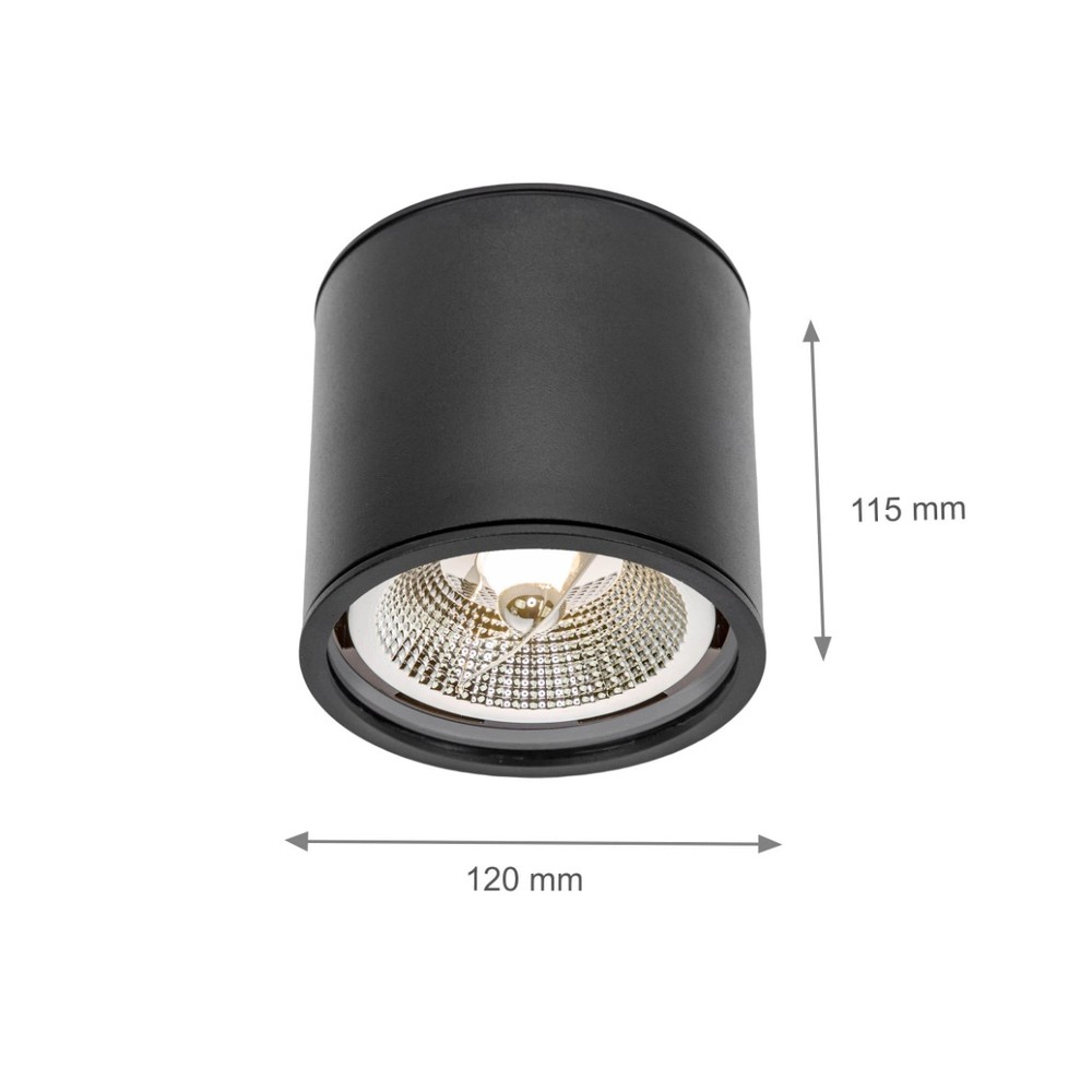 Loftlampe AR111, GU10 - IP65, sort, aluminium, påbygning, uden lyskilde