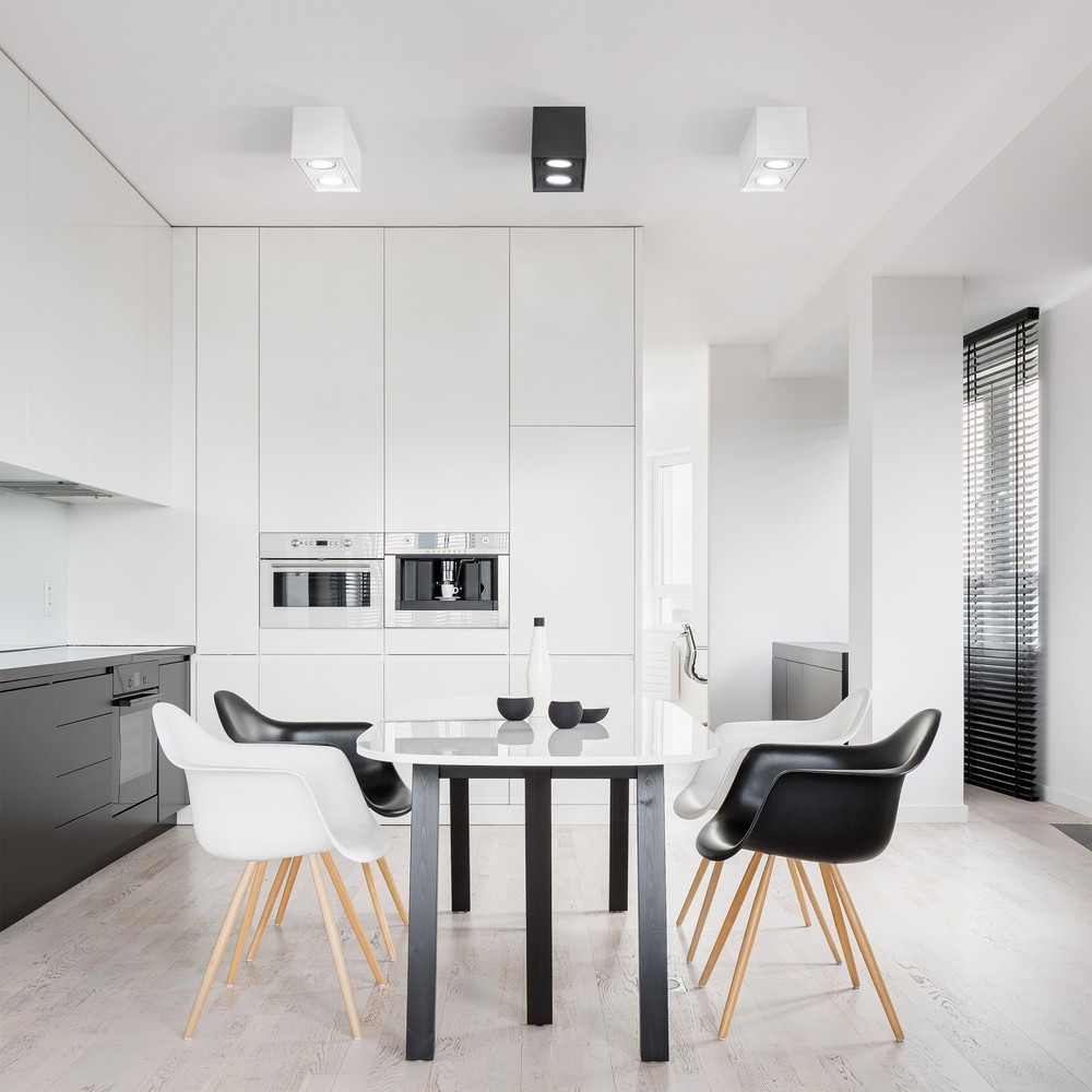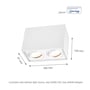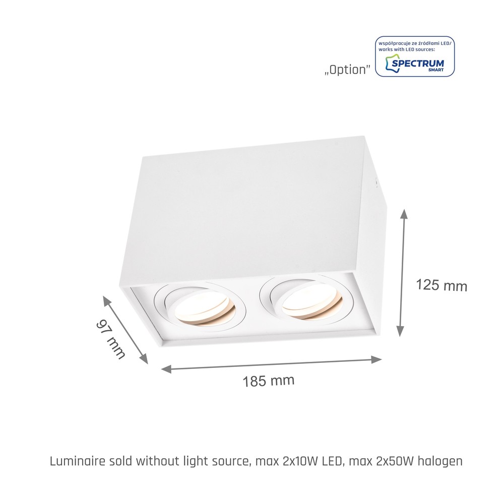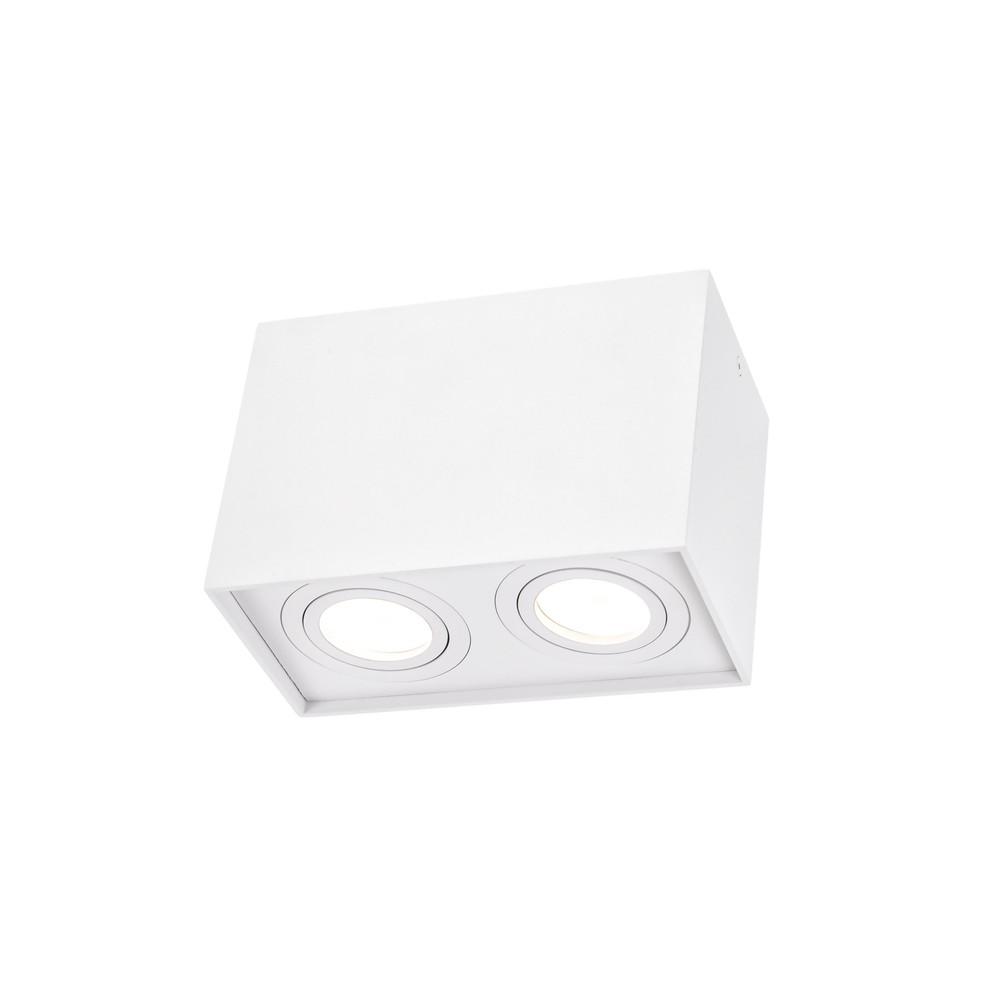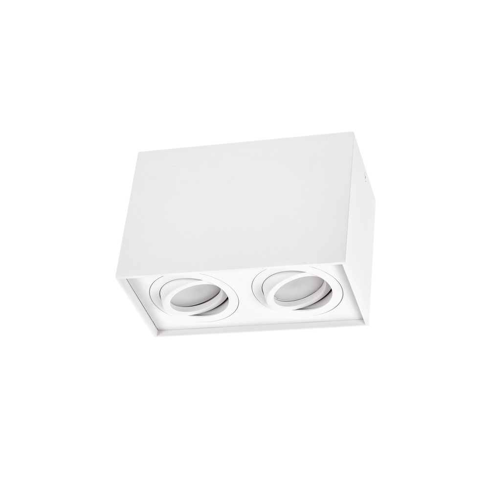 Rektangulær loftspot i aluminium med plads til 2xGU10 lyskilder. IP20-klassificeret og designet til indendørs brug.