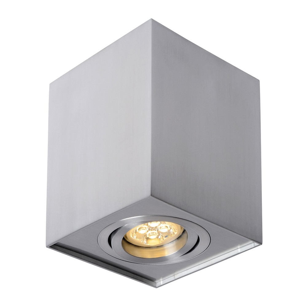 CHLOE GU10 spot: firkantet, sølv, justerbar, IP20. Lavet af aluminium, bruger GU10 fatning. Kræver ekstern lyskilde.