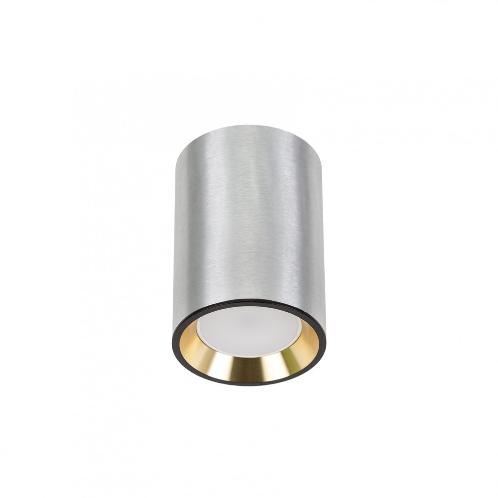 Chloe Mini P20 loftspot med GU10 fatning. Fremstillet i aluminium med sølv hus, guld ring og sort kant. IP20 klassificeret.