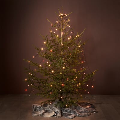 Lyskæden er designet til udendørs brug med en IP44-klassificering, hvilket betyder, at den er beskyttet mod vandsprøjt. Den leveres med en 3 meter lang tilslutningsledning i stof og en transformer til strømforsyning.