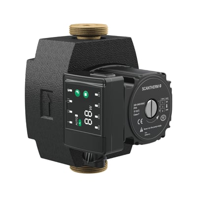 Cirkulationspumpe ST1 25-6-180B med høj ydelse og energiklasse A. Fremstillet i messing, egnet til brugsvand, 1 1/2" tilslutning, 180 mm indbygningslængde.
